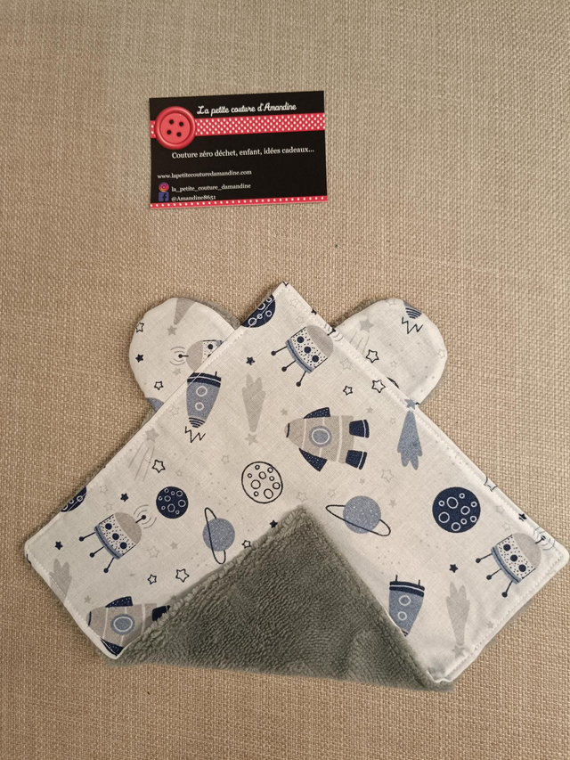 Un côté tissus à motif et un côté en éponge bambou ou minky.