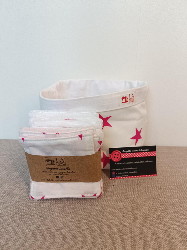 Voici une panière reversible comprenant 10 lingettes lavables.