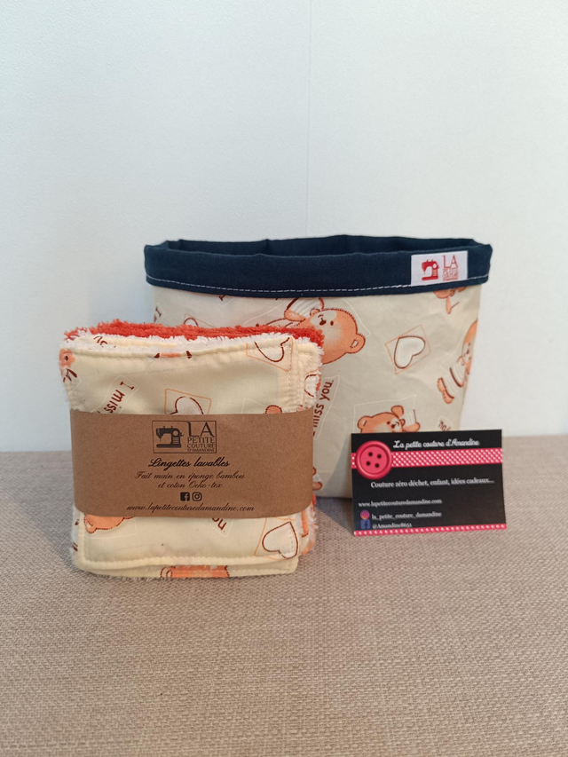 Voici une panière reversible comprenant 10 lingettes lavables.