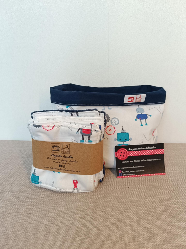 Voici une panière reversible comprenant 10 lingettes lavables.