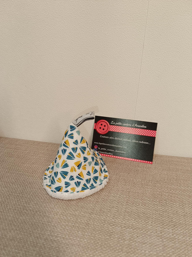 À l'extérieur un tissu à motif en coton et à l'intérieur un tissu bambou pour une meilleure absorption.