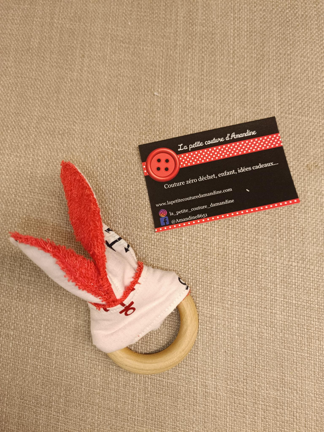 L'anneau de dentition est en bois naturel non traité, donc sans danger pour bébé.