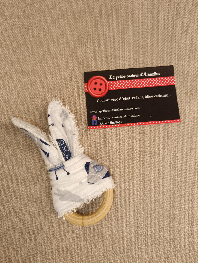 L'anneau de dentition est en bois naturel non traité, donc sans danger pour bébé.