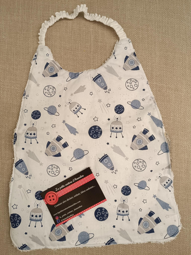 Le bavoir élastique est l'idéal pour apprendre à votre enfant à mettre son bavoir en toute autonomie et conseillé pour la cantine en école maternelle.